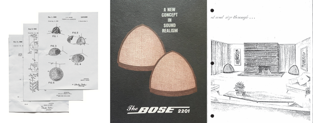 El Bose 2201 de 1966, con su forma esférica de 1/8 y múltiples bocinas, fue el primer producto de la empresa pero fracasó comercialmente. En 1968, Bose se recuperó lanzando los altavoces 901 de reflexión de sonido, que se convirtieron en un éxito de ventas global.